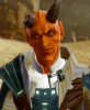 Devaronians are a bipedal humanoid race from the planet Devaron. Male Devaronians are hairless, and possess a pair of horns which grow from the top of their heads, while females have a full head of hair, and no horns. Their skin color ranges from red to green, depending on the region, and they have red, purple, or dark brown eyes. Devaronians have black, silver-based blood, and they possess two livers which help them filter toxins and carcinogens; as a result they are high resistant to poisons and toxins.